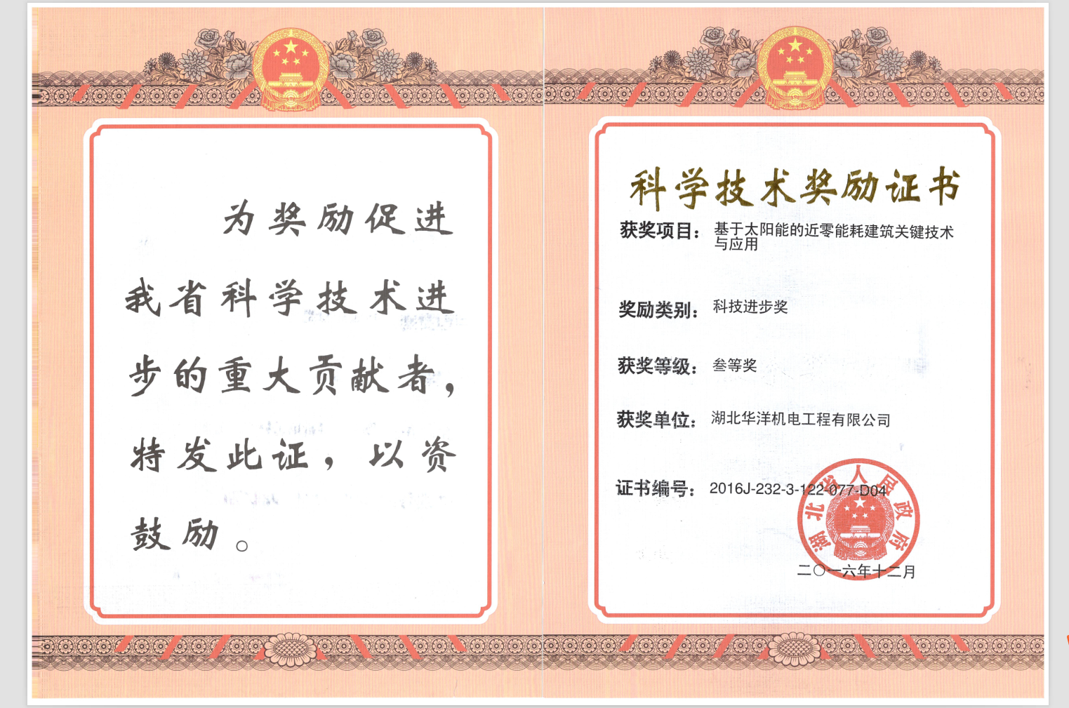 科學(xué)技術(shù)獎(jiǎng)勵(lì)證書